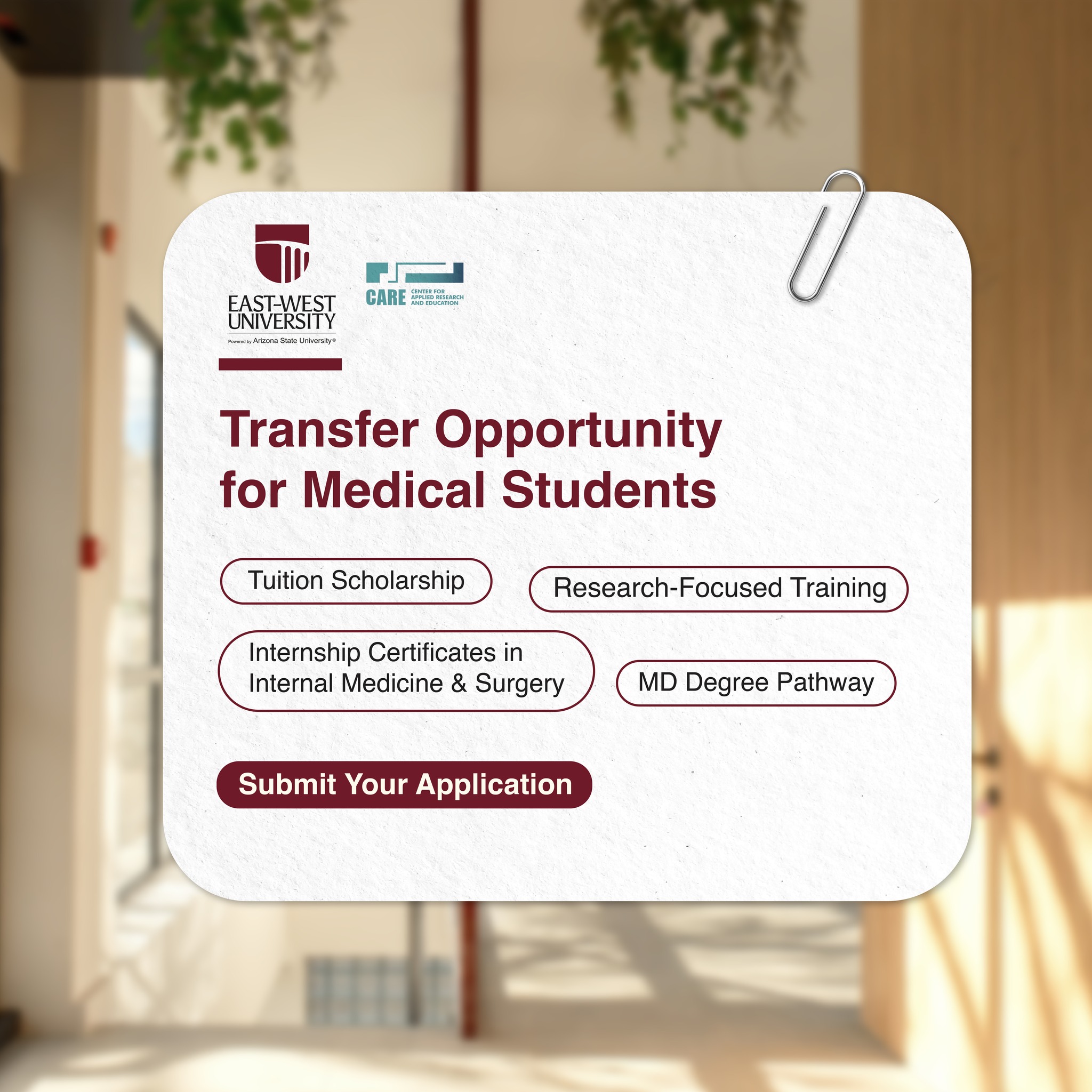 ამჟამად უნივერსიტეტში მოქმედებს მედიცინის სკოლა, რომელიც ახორცილებს მედიცინის პროგრამას.