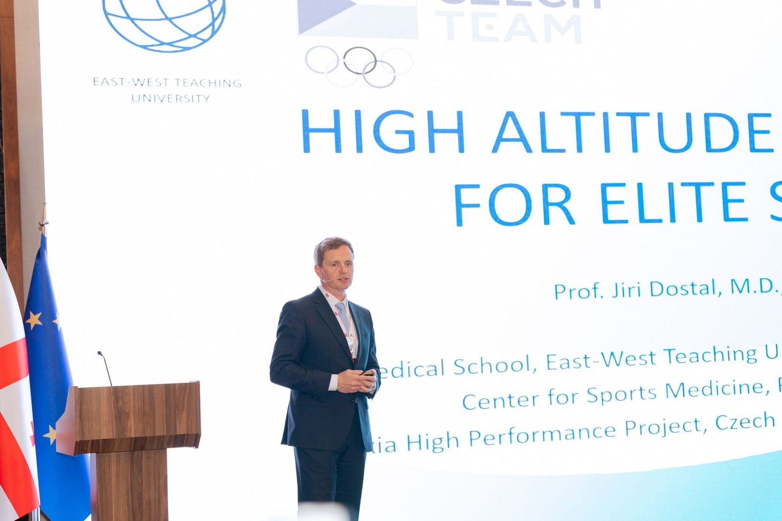 კონფერენციის სამუშაო სესია ჩეხი პროფესორისა და აღმოსავლეთ-დასავლეთ უნივერსიტეტის უწყვეტი განათლების სამსახურის ხელმძღვანელის ირი დოსტალის გამოსვლით გაიხსნა. მისი მოხსენება მოიცავდა სიმაღლეზე ვარჯიშის გავლენას სპორტსმენის ფიზიოლოგიაზე და ჰიპოქსიურ გარემოსთან ადაპტაციის მექანიზმებს. ბატონმა ირიმ, ასევე მიმოიხილა ელიტარული სპორტისთვის ეფექტური და უსაფრთხო წვრთნის გეგმის ფორმირების ძირითადი პრინციპები.